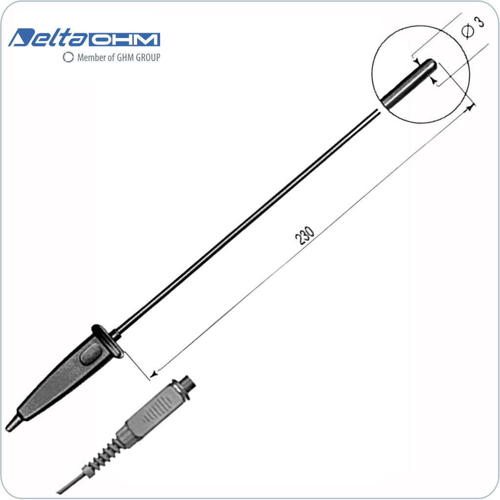 Esta sonda está fabricada con un sensor RTD (Termoresistencia) del tipo Pt100. Puede utilizarse con los Termómetros Digitales Pt100 de Delta Ohm: HD2307.0 | HD2107.1 | HD2107.2 | HD2127.1 y HD2127.2.